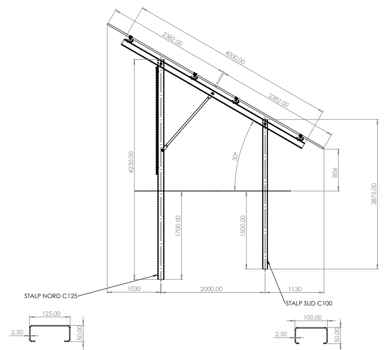 Structura de fixare la sol Zonetec Solar ZS_MASA_PV_2x12PV_24PV permite montarea a 24 panouri fotovoltaice pe 2 randuri verticale cu insertie 1.500 + 1700 mm. Sistemele de fixare la sol Zonetec Solar sunt special concepute pentru a oferi stabilitate și durabilitate superioară parcurilor fotovoltaice. Utilizând profile zincate laminate la rece, Zonetec Solar garantează o instalare rapidă, eficientă și economică, perfect adaptabilă oricărui tip de teren. Alegeți Zonetec Solar pentru a optimiza performanța și longevitatea proiectelor dumneavoastră fotovoltaice.